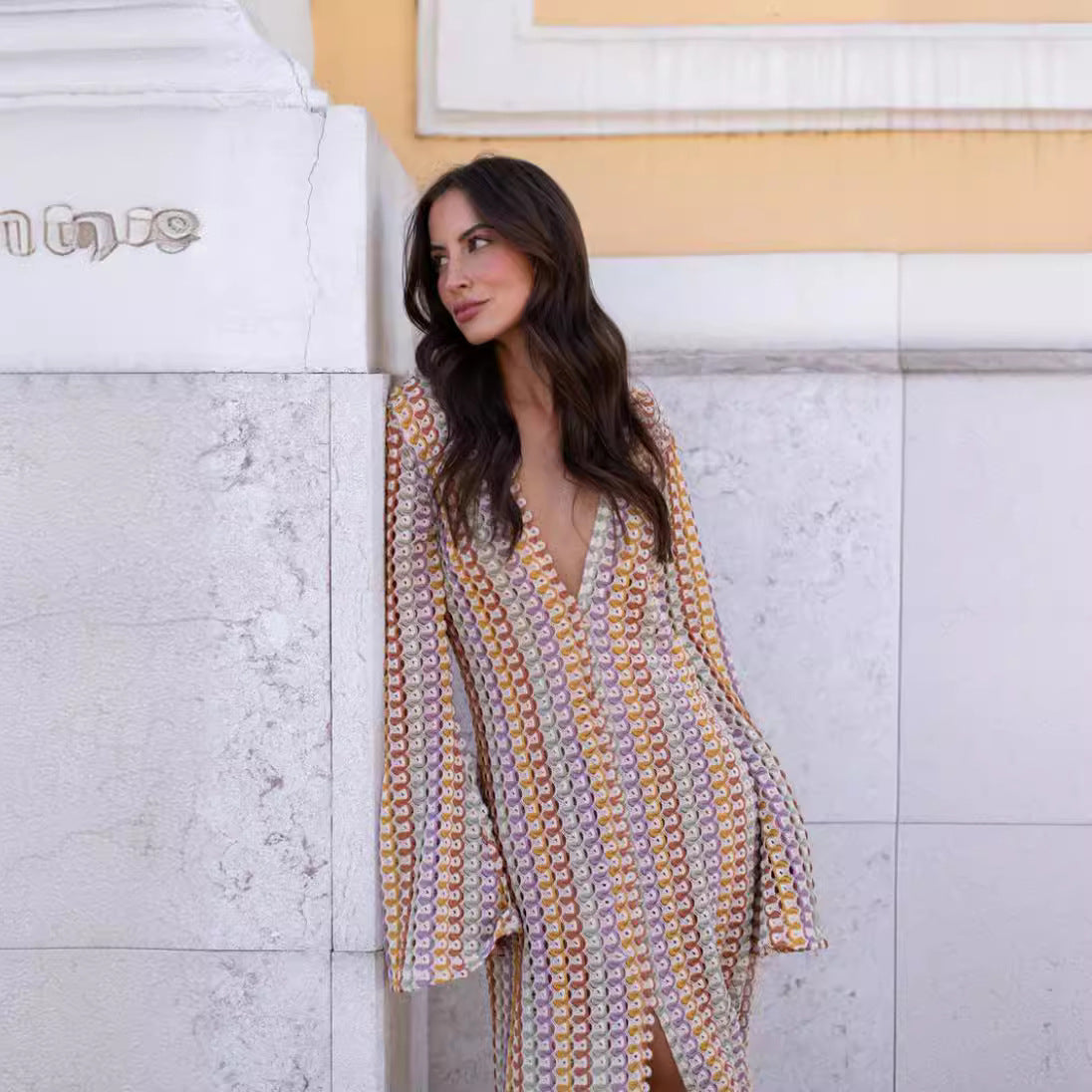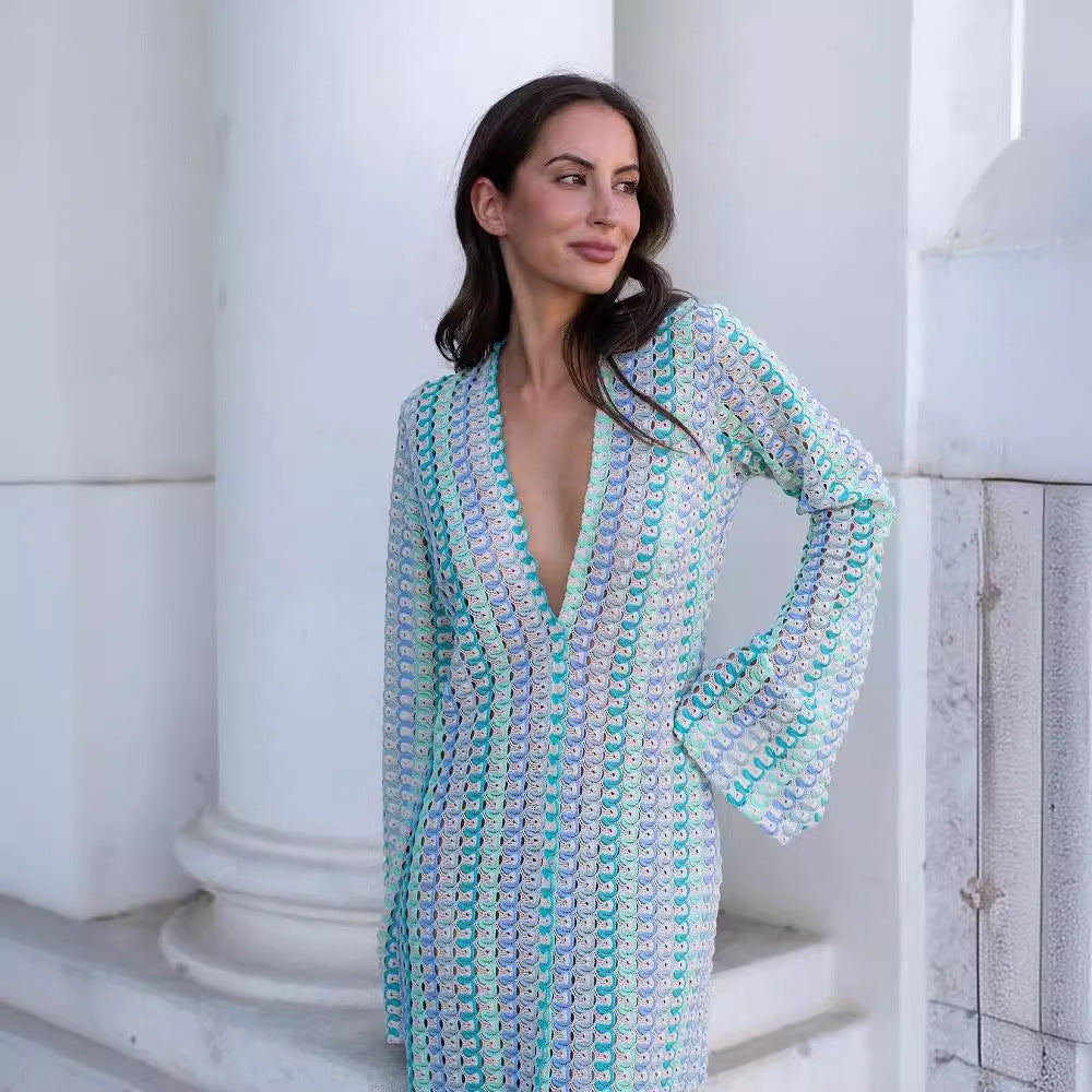Color Lace Hollow Beach Low Cut Front Slit Dresses
