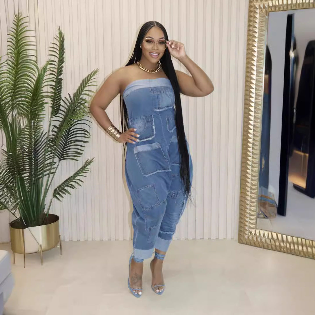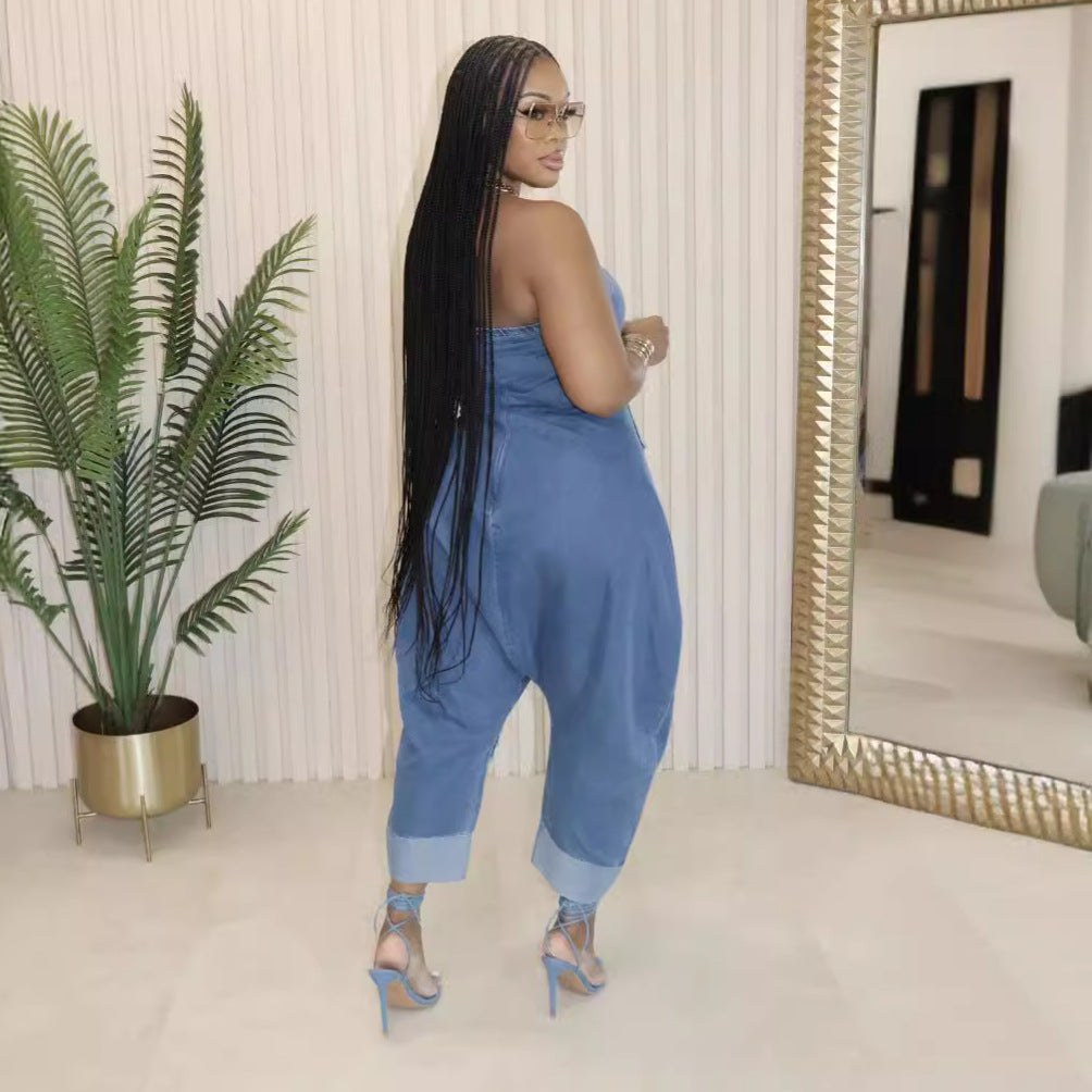 Denim Cargo Stitching Washed Loose Sleeveless Jeans
