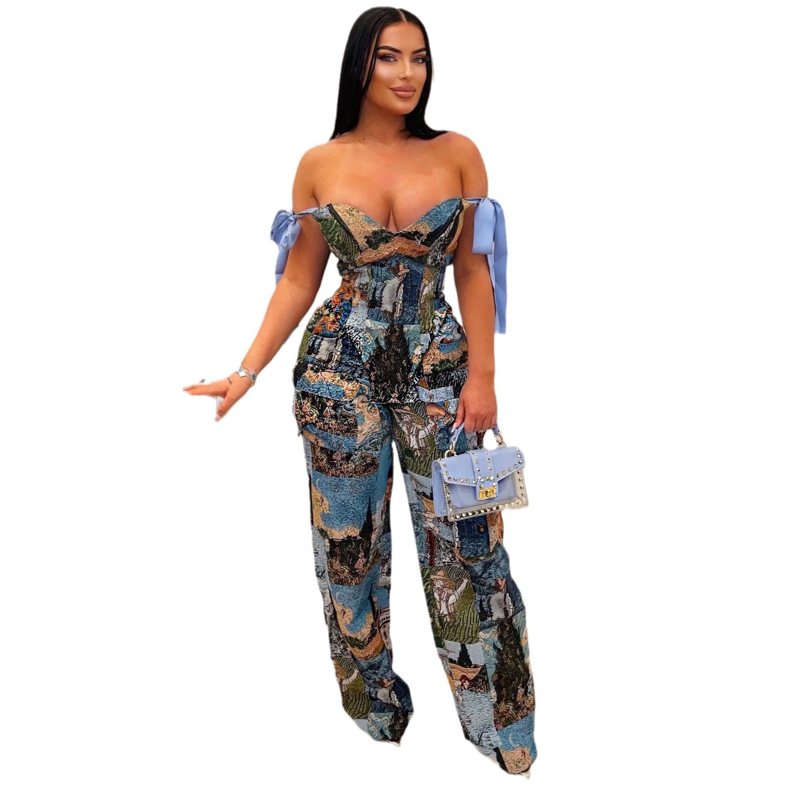Printed Oil Painting Pattern Strap Drawstring Suits