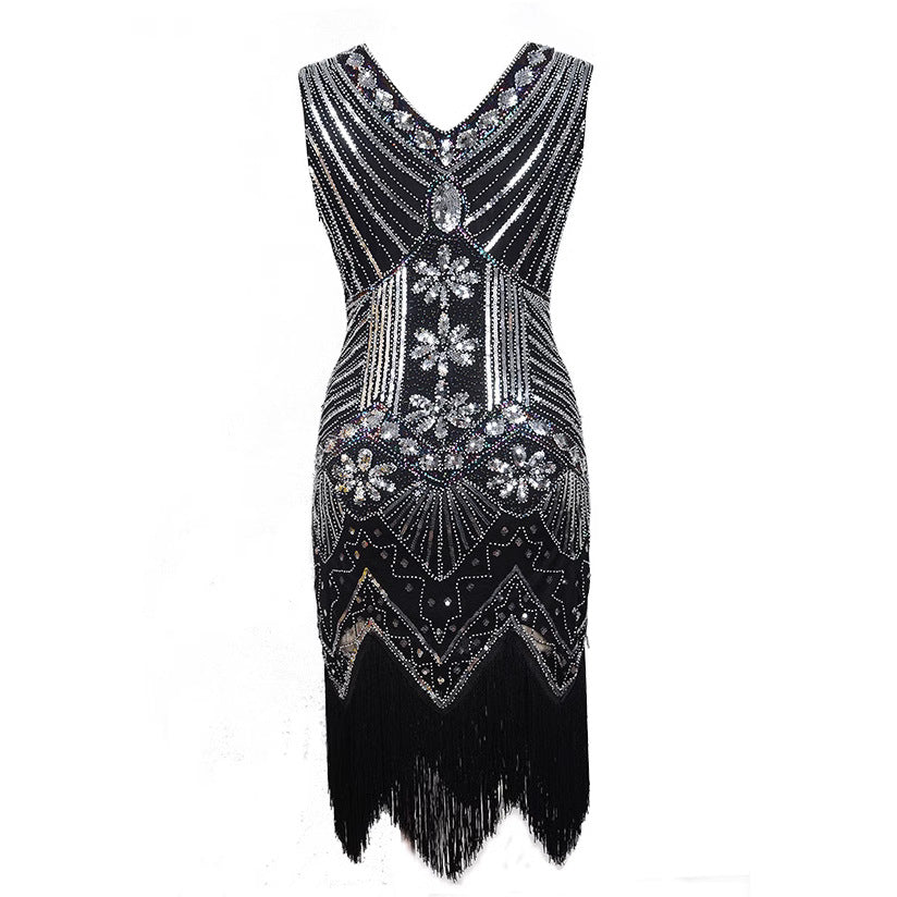 Retro Style Sequin Bead Dress Front Back Evening Dresses