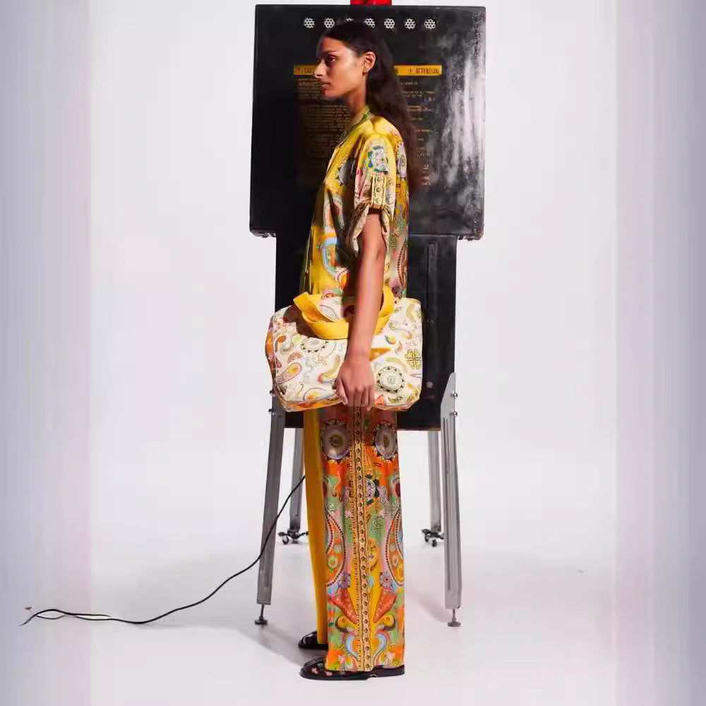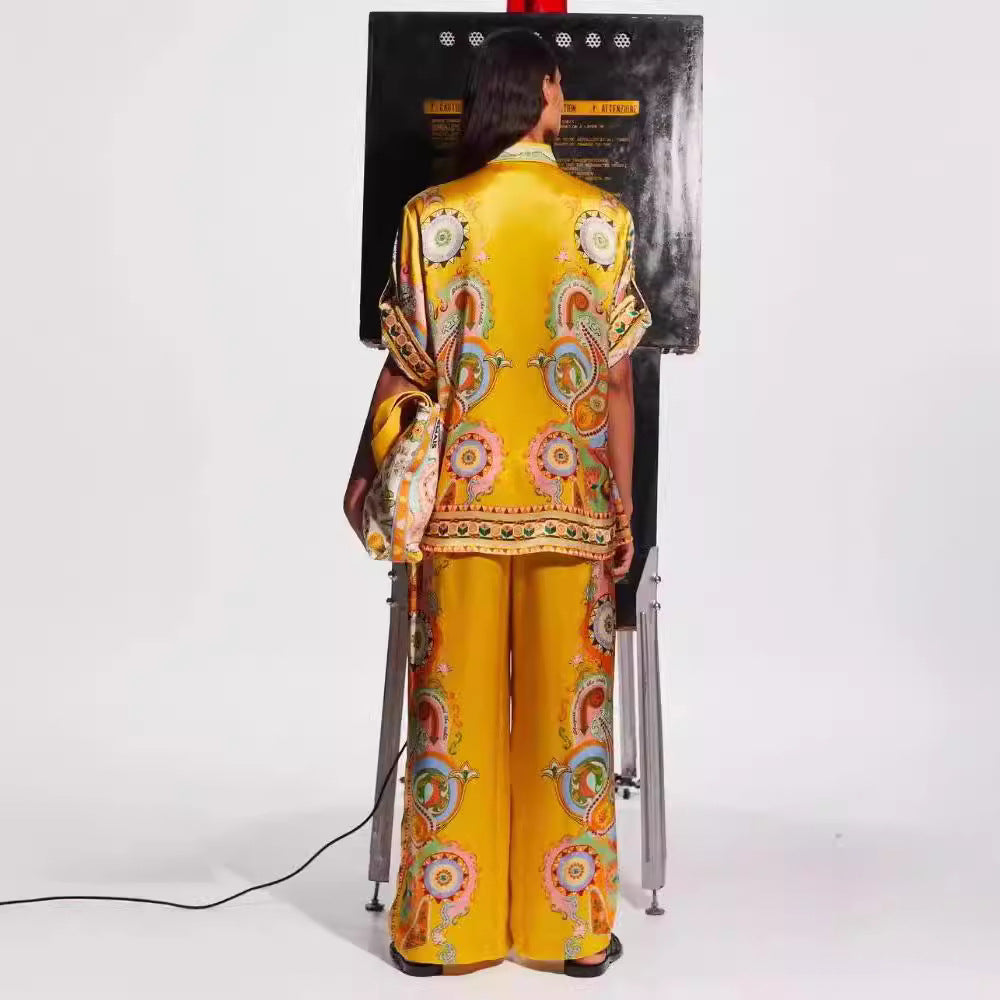 Satin Printed Flowers Sleeve Vacation Leisure Suits