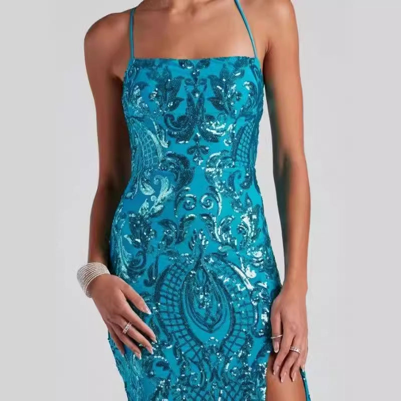 Sequined Dress Elegant Slit Banquet Party Evening Dresses