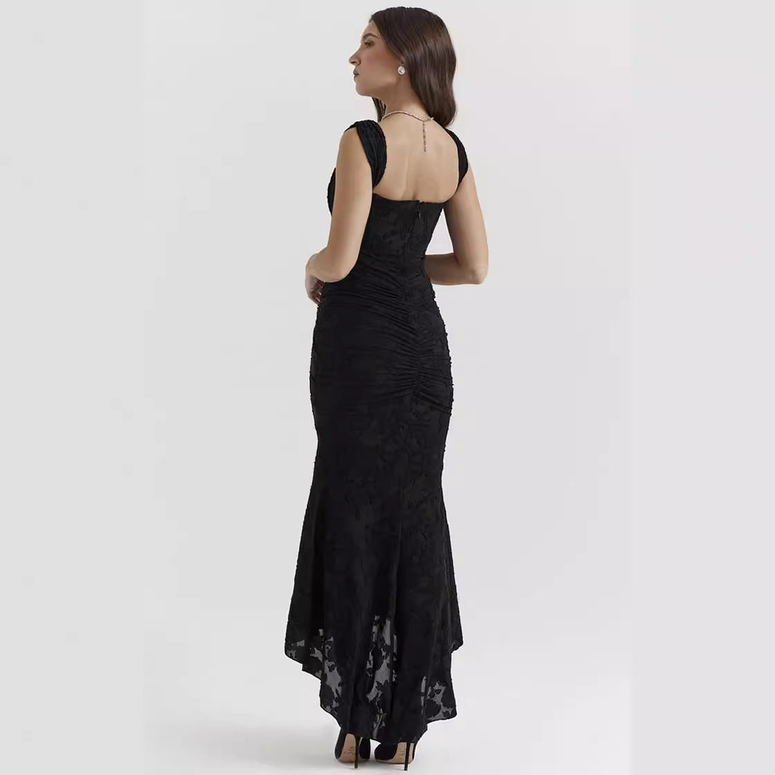 Sleeveless Solid Color Fishbone Waist Dress Evening Dresses
