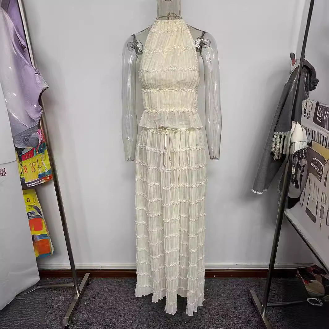 Summer Backless Halter Strap Drawstring Chiffon Dresses