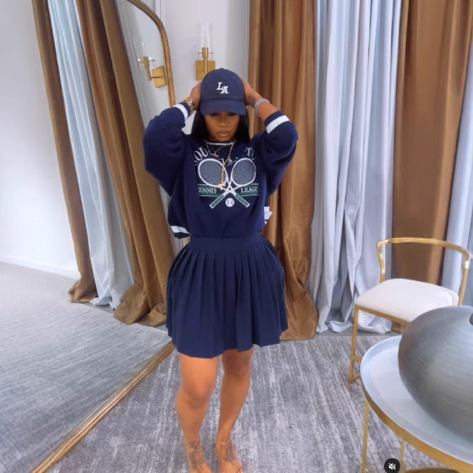 Women's Autumn Baseball Pullover Pleated Two-piece Set Suits