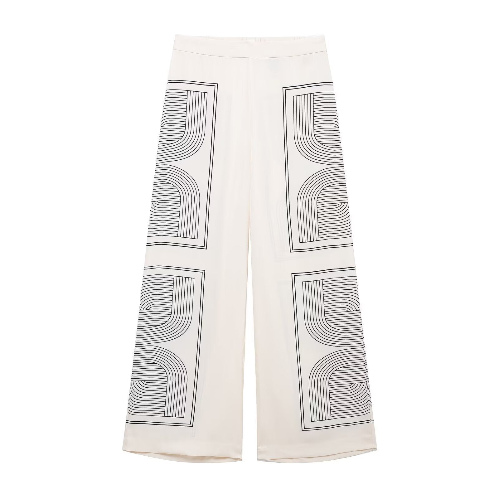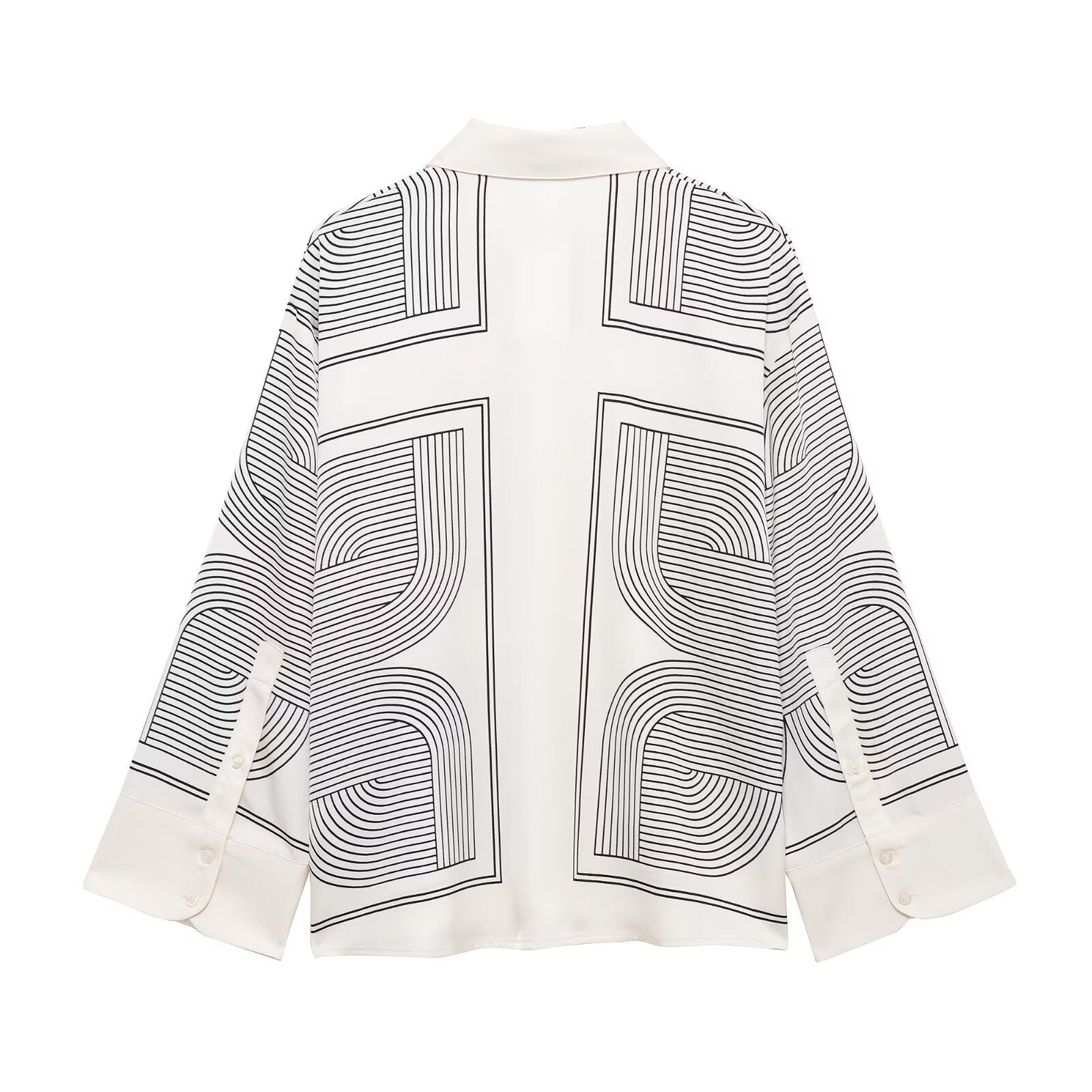 Women's Casual Linear Printed Long Sleeve Loose Suits