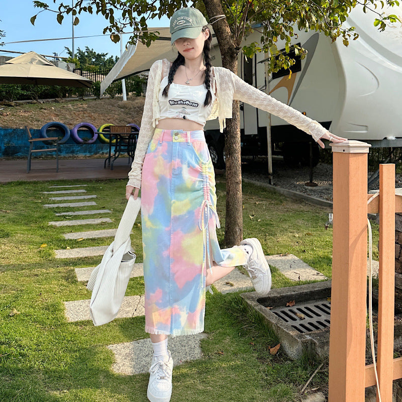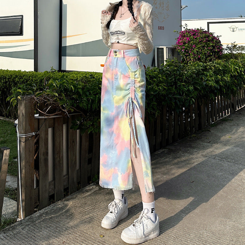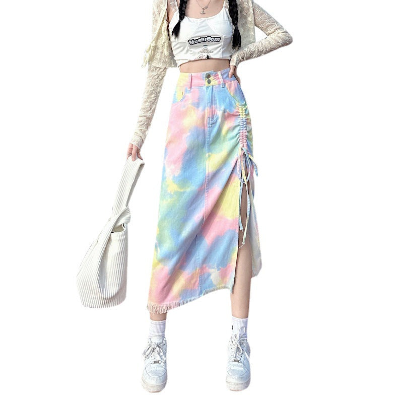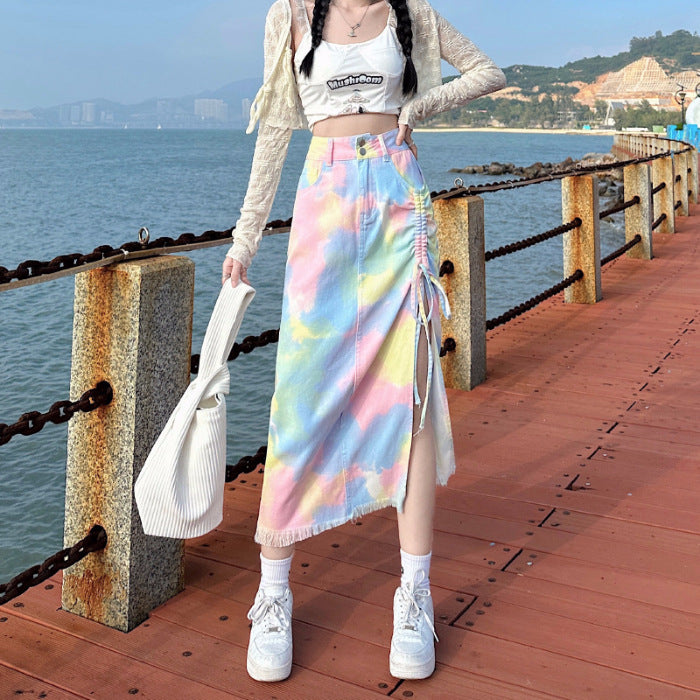 Women's Denim Half Waist Slimming Ethnic Flying Skirts