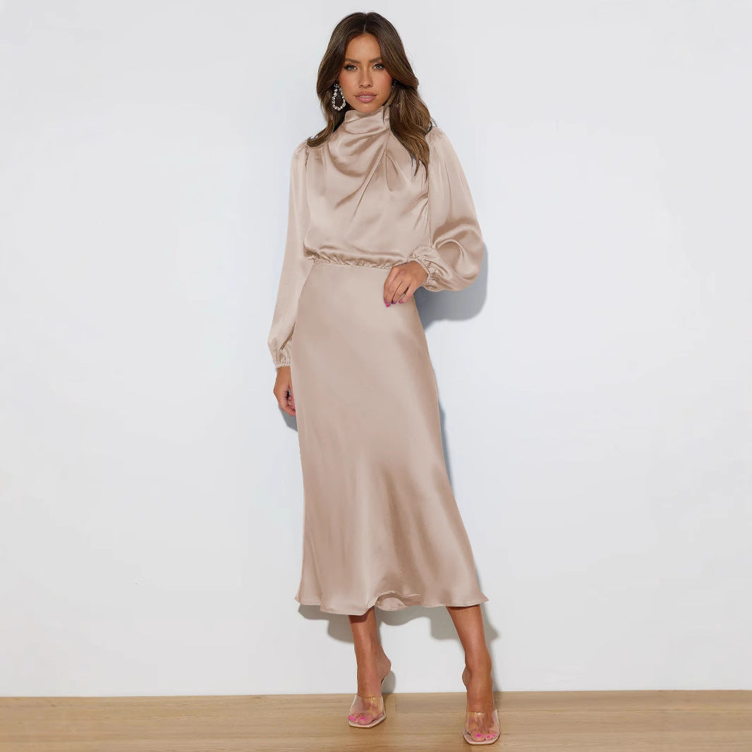 Women's Design Halter Dress Summer Satin Draping Evening Dresses