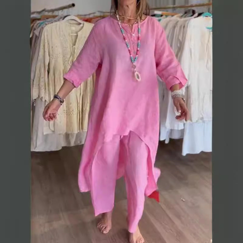 Women's Fashion Cotton Linen Casual Long Shirt Wide Suits
