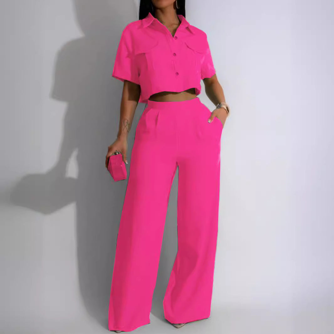 Women's Fashion Polo Collar Sleeve High Waist Suits