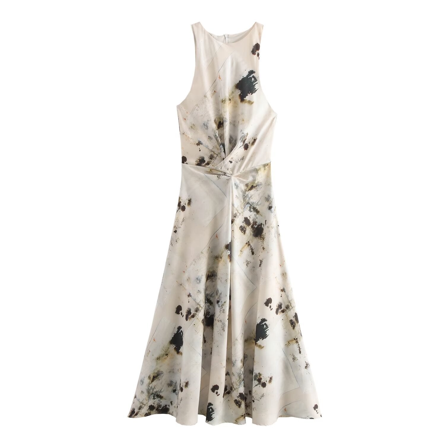 Women's Graceful Fashionable Pleated Print Sleeveless Dress Clothing