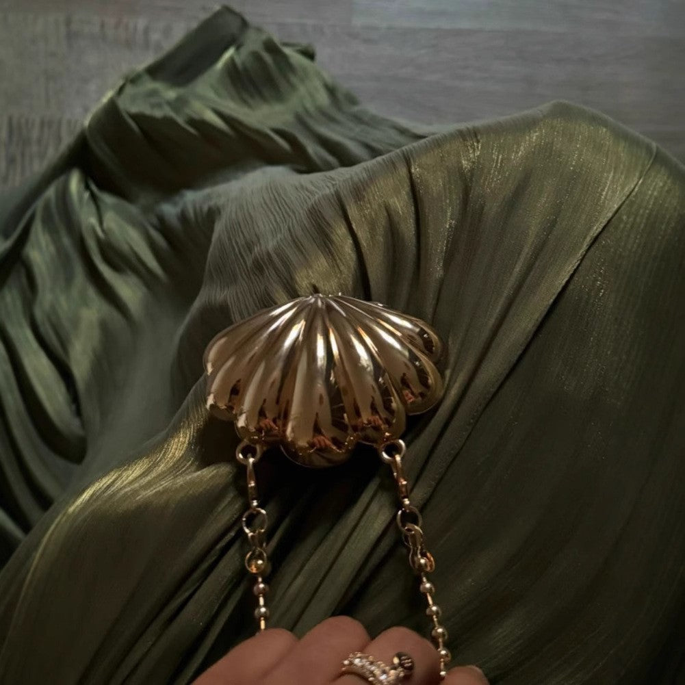 Women's Graceful Pleated Ribbon Shiny Dress Evening Dresses