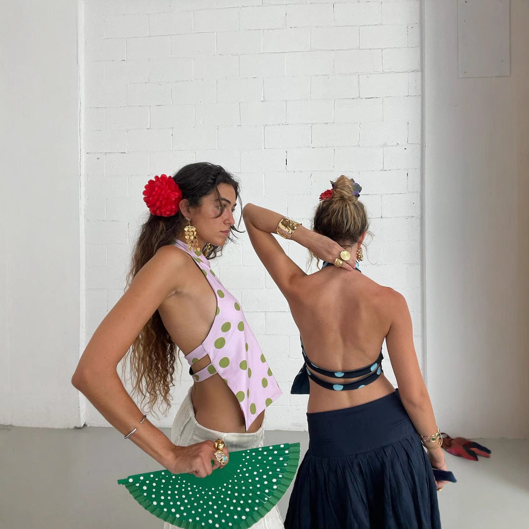 Women's Halter Elegant Sleeveless Cold-shoulder Long Irregular Tops