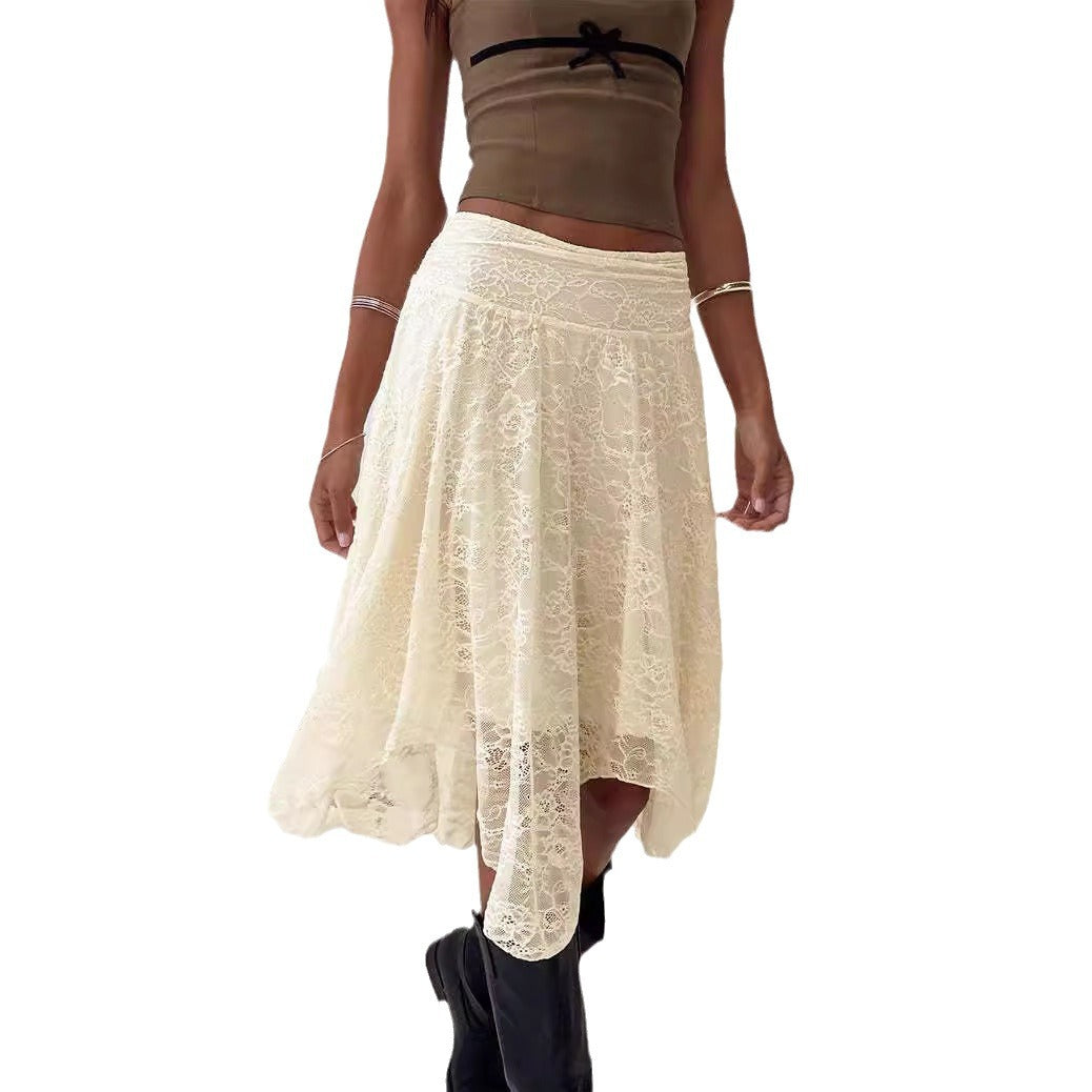 Women's Irregular Lower Hem Mid-length Lace Skirts