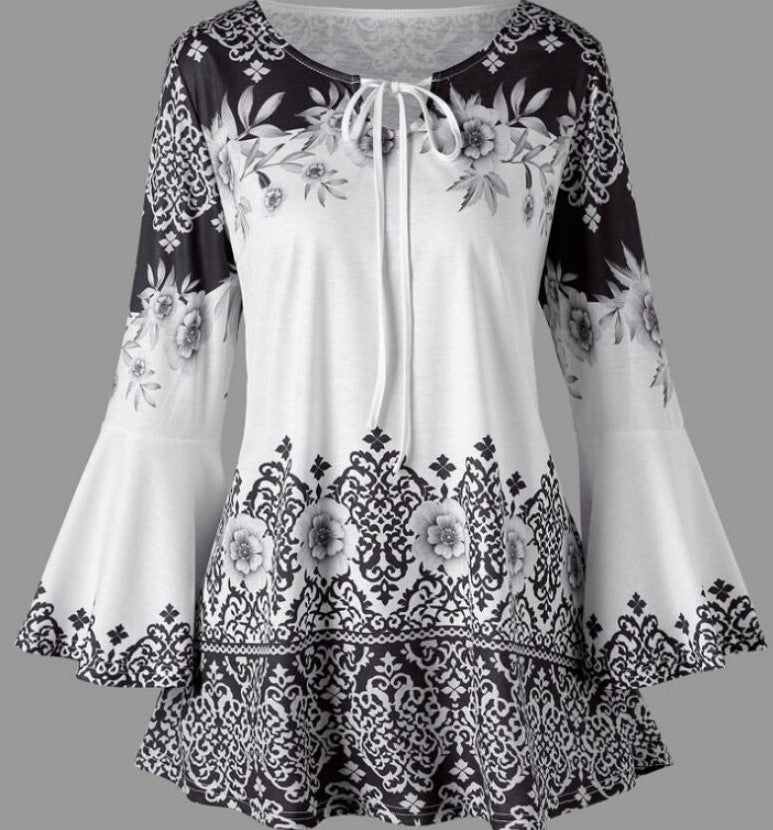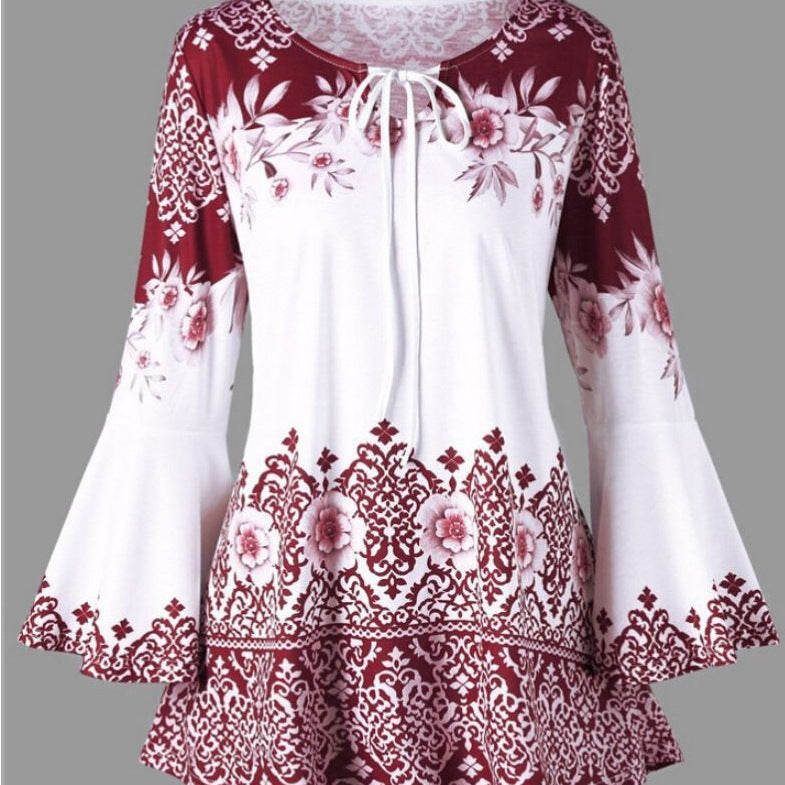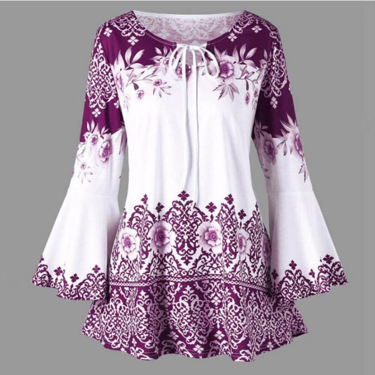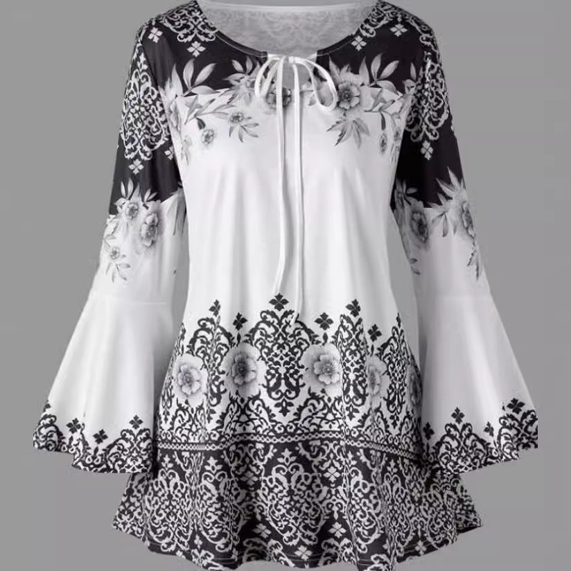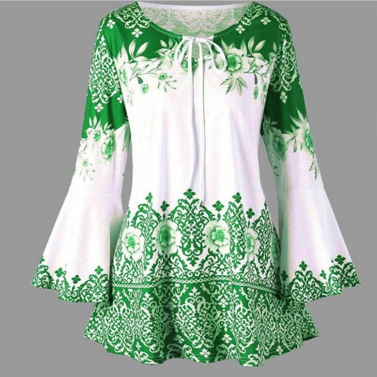 Women's Popular Print Long Horn Sleeve T-shirt Blouses