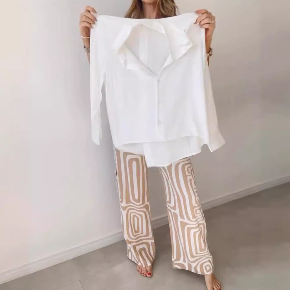 Women's Printing Commuter Shirt Loose Trousers Two-piece Suits