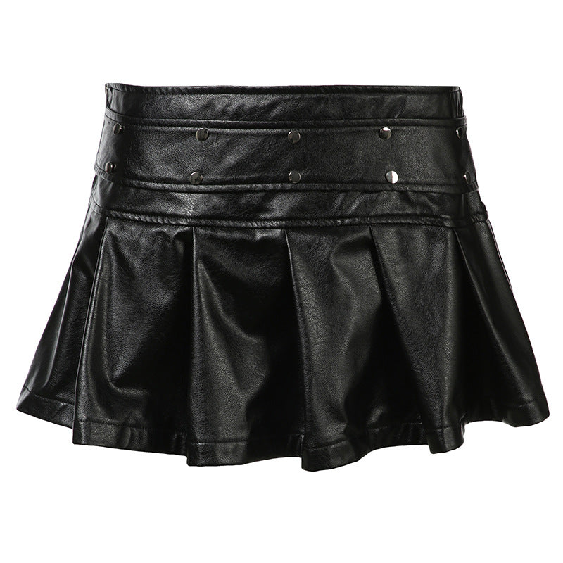 Women's Punk Rivet Belt Pleated Design Low Skirts