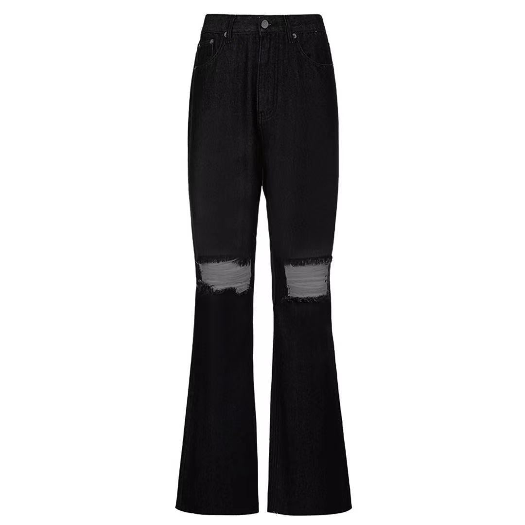 Women's Ripped High Waist Straight Wide Leg Mop Denim Jeans