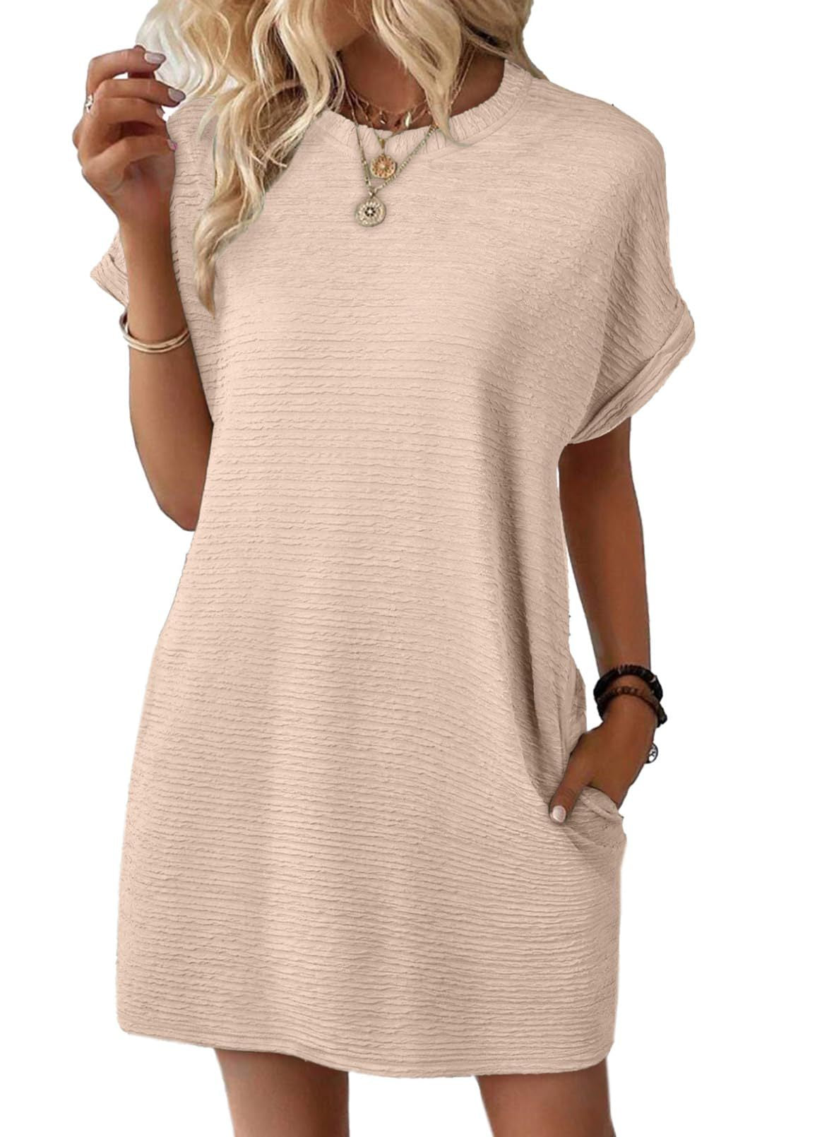 Women's Round Neck Pocket Solid Color Sleeve Shorts