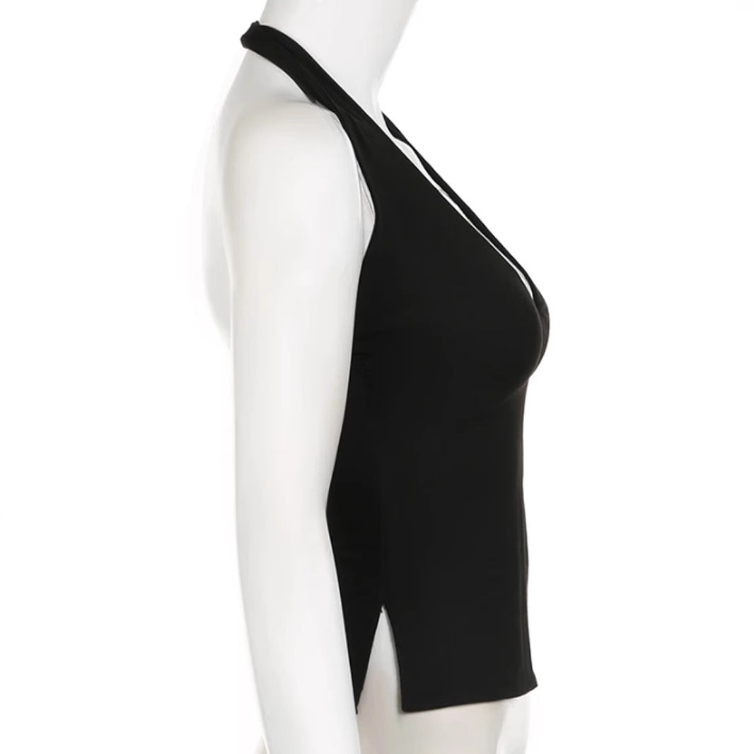 Women's Sexy Halter Backless Slit Sleeveless Summer Tops
