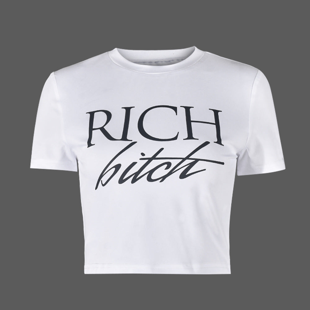 Women's Sexy Hot Midriff Outfit Adhesive Cement Letter Blouses