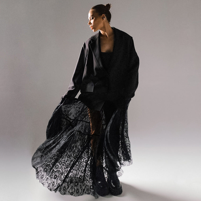 Women's Sexy Lace High Waist Commuter Black Skirts