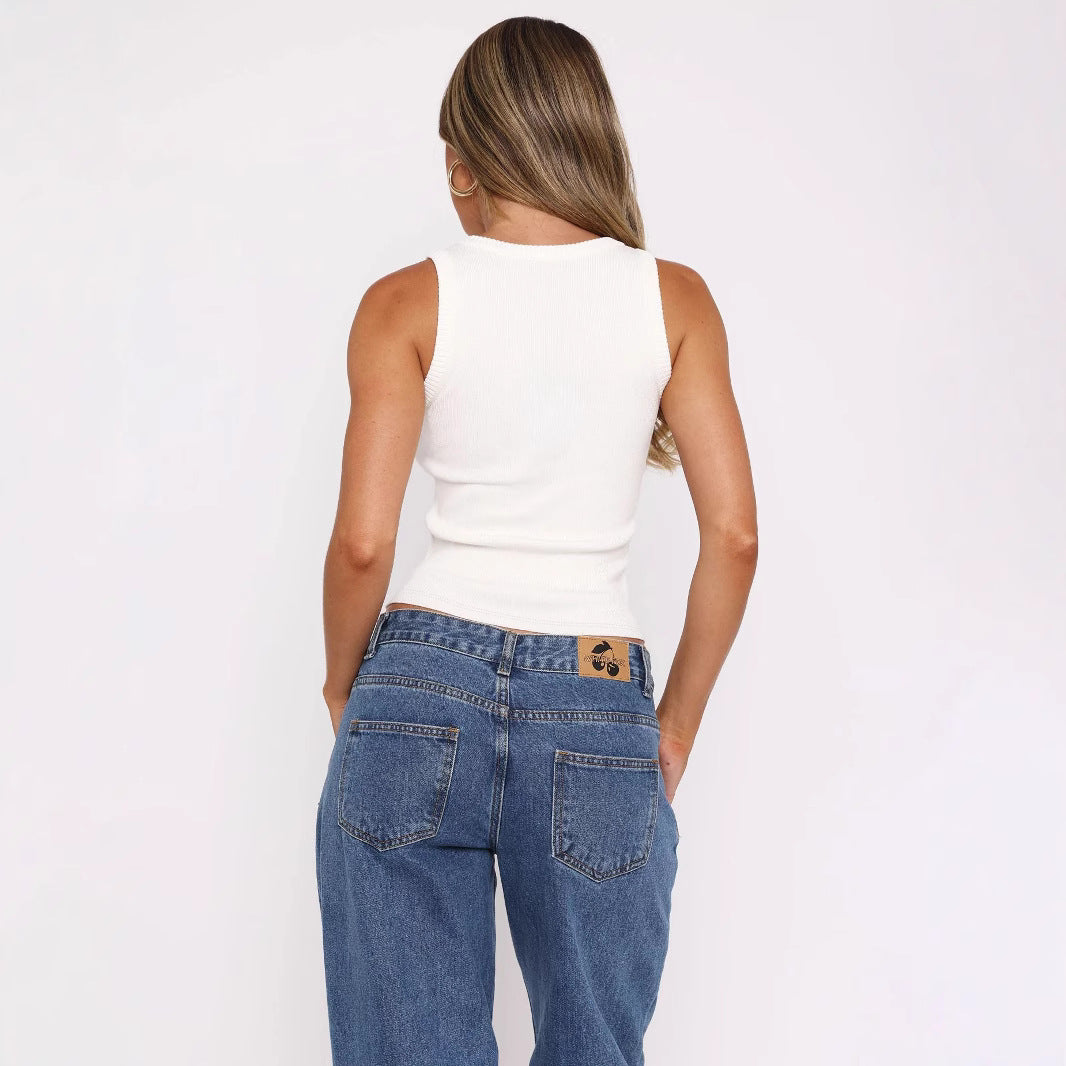 Women's Sleeveless Square Collar Basic Color Tops