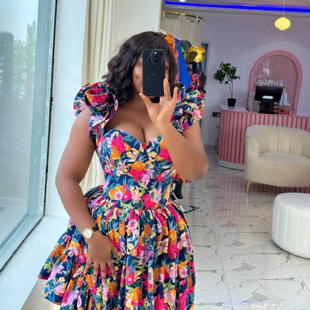 Women's Spring Fashion Print Lace Sleeve Irregular Dresses