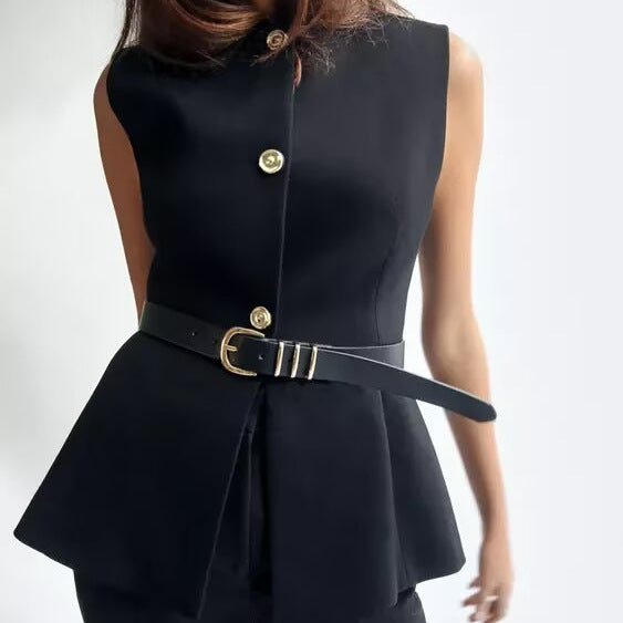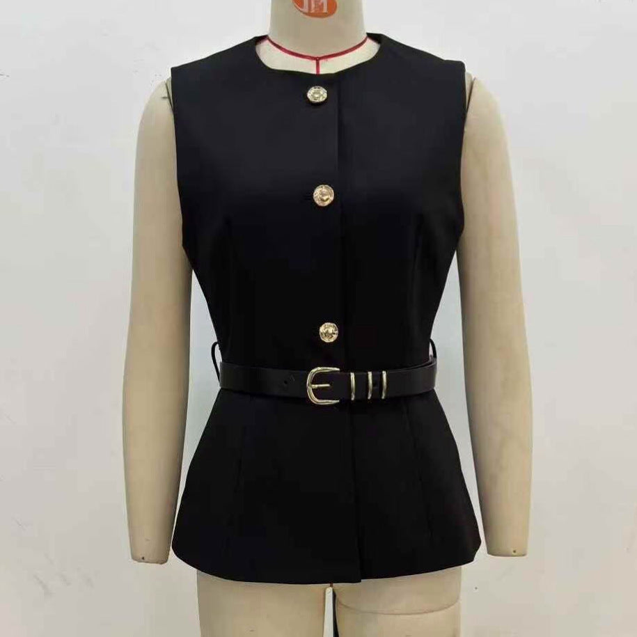 Women's Spring Round Neck Sleeveless With Belt Tops