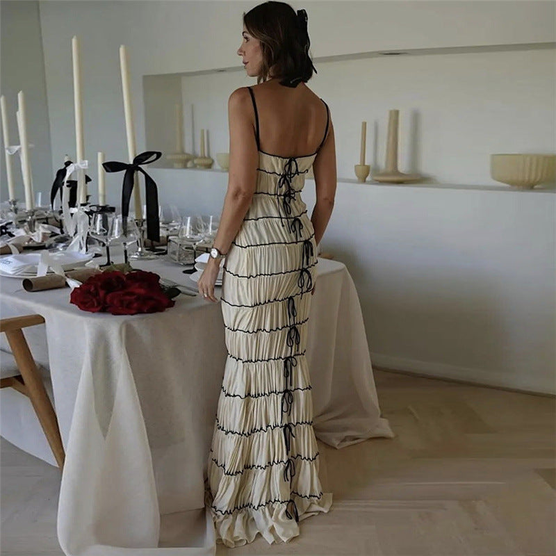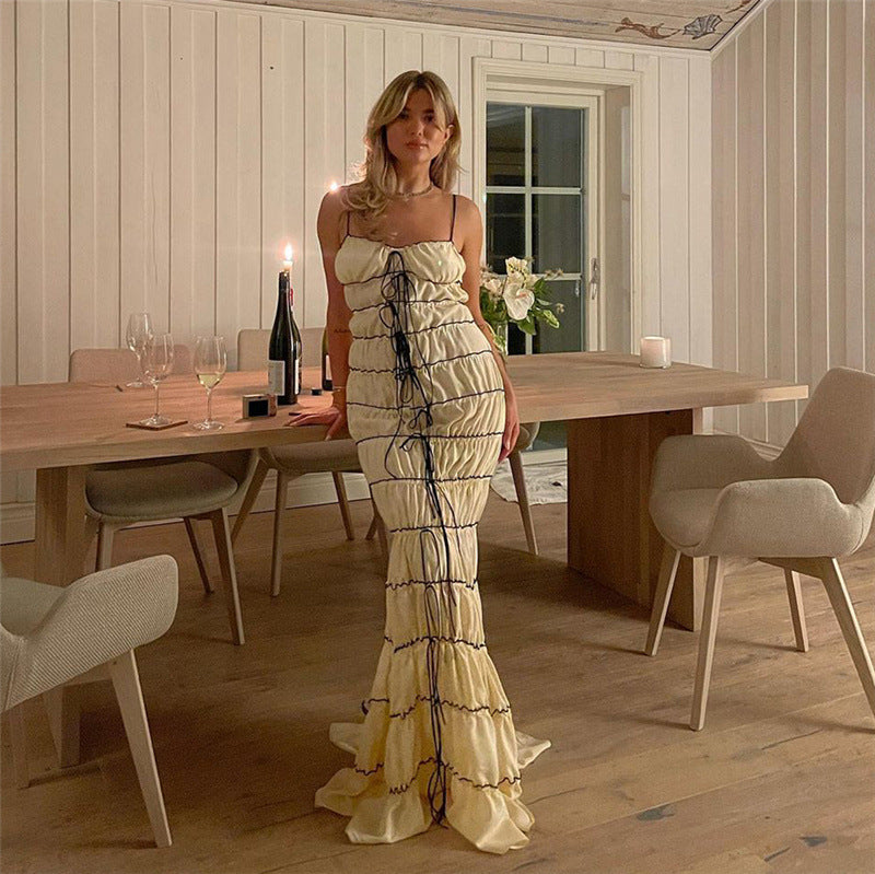Women's Style Pleated Waist Trimming Spaghetti Straps Clothing