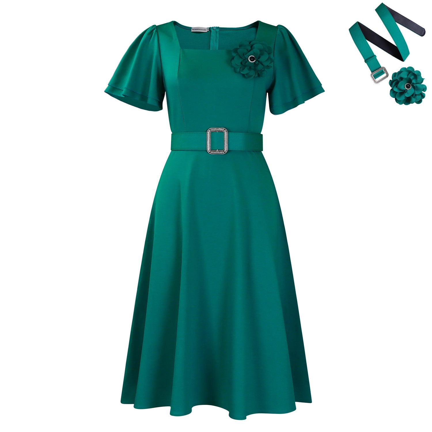 Women's Summer Female Fashion Square Collar Solid Color High Waist Dresses