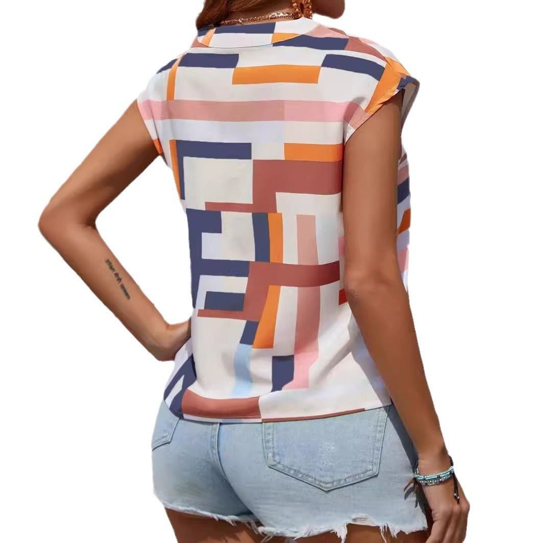 Women's Summer Geographic Print Cropped Neckline Batwing Blouses