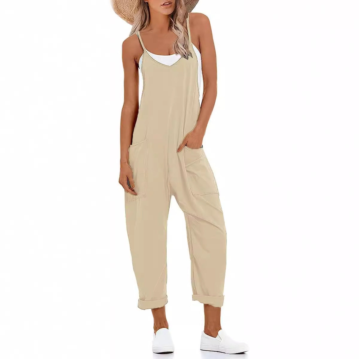 Women's Summer Large Pocket Overalls Loose Bodysuit Jumpsuits