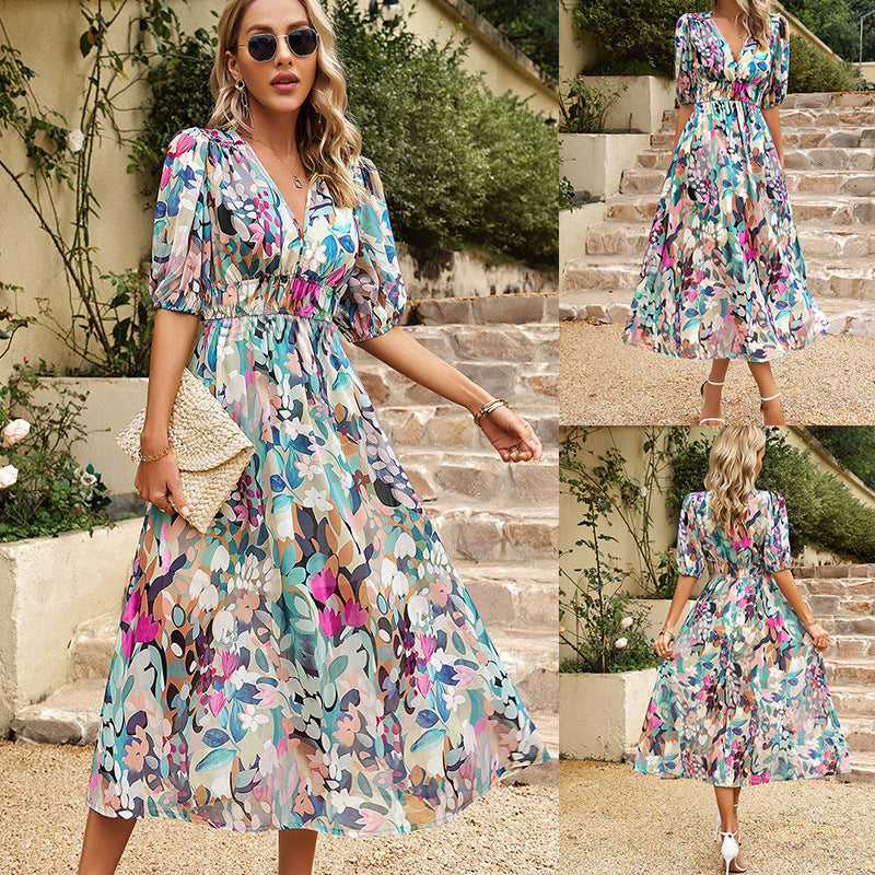 Women's Summer Sleeve Temperament Chiffon Printed Dress Dresses