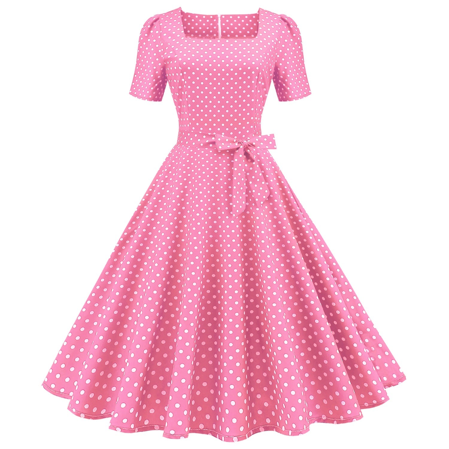 Women's Temperament Square Collar Sleeve Polka Dot Dresses