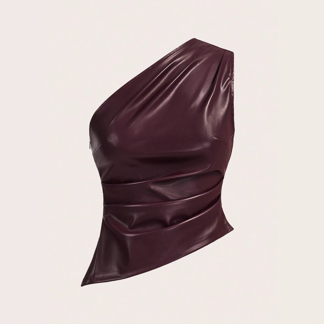 Women's Wear Solid Color Sleeveless Diagonal Collar Tops